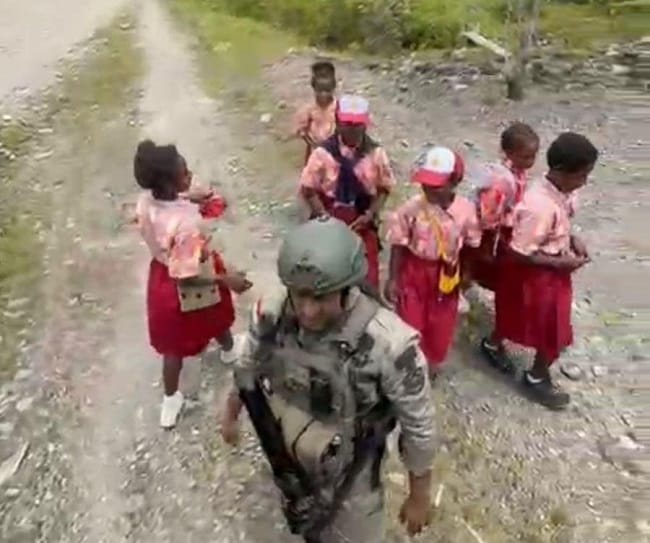 Kegiatan Patroli Satgas Damai Cartenz di Kenyam, Wujud Komitmen Jaga Stabilitas Keamanan Nduga