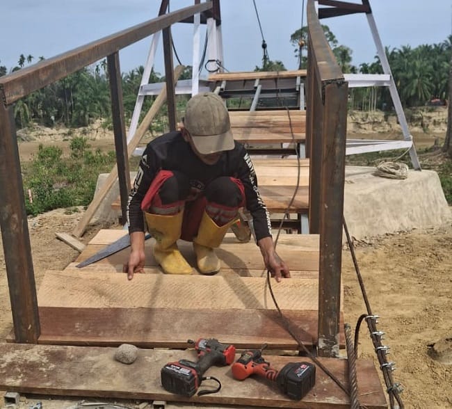 ACEH TAMIANG – Upaya percepatan pembangunan infrastruktur terus dilakukan oleh jajaran TNI dari Kodam Iskandar Muda guna meningkatkan konektivitas wilayah serta kesejahteraan masyarakat. Salah satunya melalui pembangunan Jembatan Gantung Perintis Garuda yang melintasi Sungai Tamiang, menghubungkan Desa Sekerak Kiri dengan Desa Bandar Mahligai, Kecamatan Sekerak, Kabupaten Aceh Tamiang.